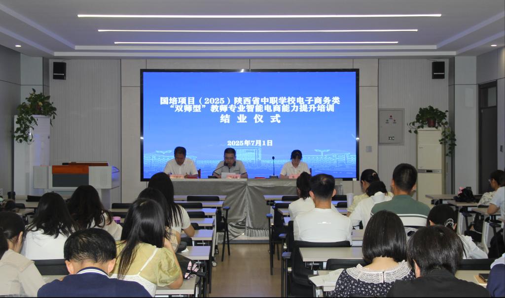 6月22日至7月1日,由陕西省教育厅主办、best365中国官方网站继续教育学院承办的“国培计划(2025)陕西省中职学校电子商务类’双师型’教师专业智能电商能力提升培训班”圆满结业,来自全省中职院校的60名电子商务专业骨干教师参加了为期10天的系统培训。