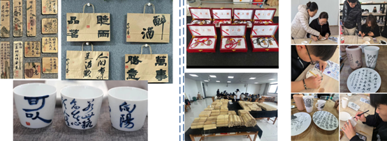 社会服务显担当:美术系团队联合开展“美育进乡村”活动,服务5所乡村小学、8个社区,受益群众超2000人。美术学团队为华阴老腔非遗传承设计视觉形象,书法学团队在竹简上书写整理的《史记》被学校人文学院收藏,团队还积极参与地方文化建设项目。