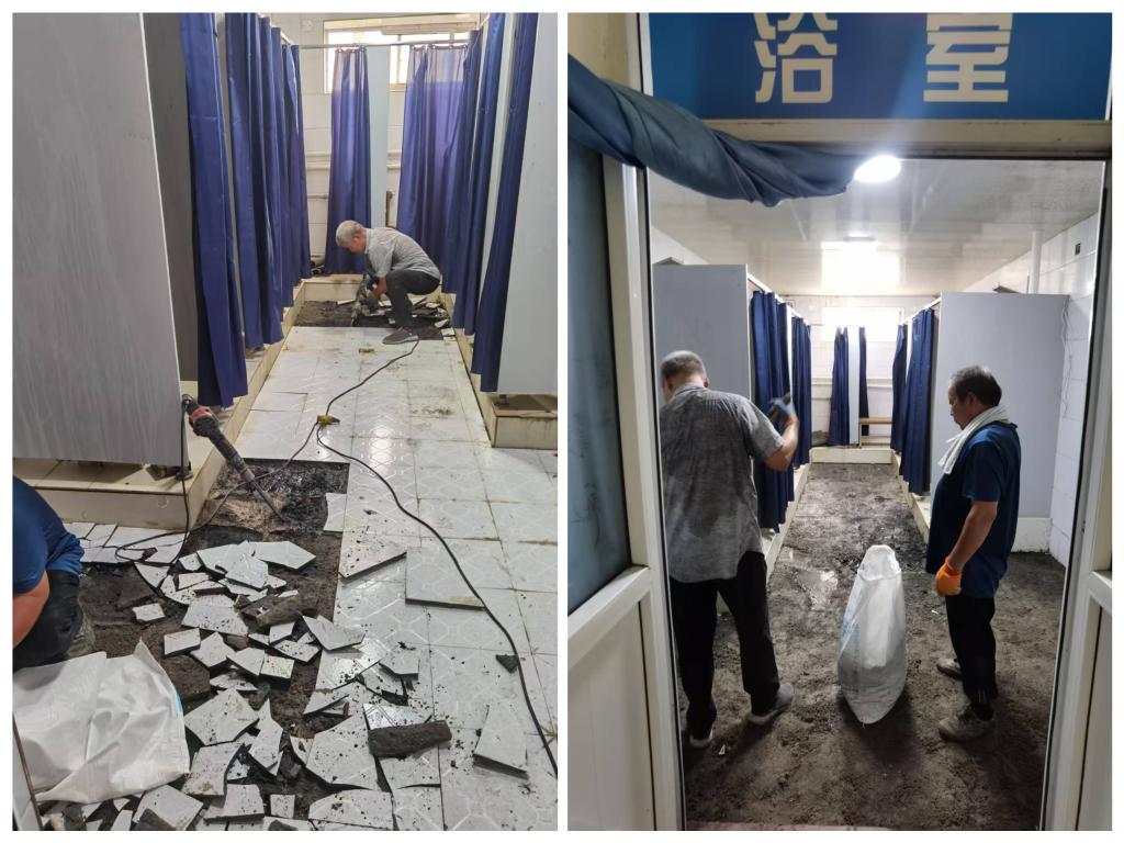 在师生日常起居的“关键处”下功夫:朝阳校区和富平校区的学生宿舍淋浴水罐迎来深度清洁,工作人员细致清除水垢与杂质,让每一次淋浴都洁净舒心;针对朝阳校区学生宿舍淋浴间的地面,进行细致排查,逐一维修破裂的地砖,确保行走安全,同时对损坏的淋浴间隔断进行修理,让日常洗漱更舒心。