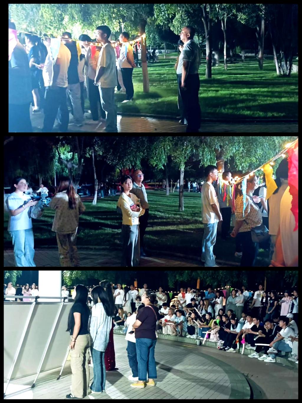 除精彩节目外,音乐会设置的抽奖环节增添互动惊喜。每当精美的盲盒送出,现场便响起雷鸣般的欢呼,进一步拉近师生距离。台下,观众挥舞荧光棒、点亮手机闪光灯,汇成一片温暖的“星光海”,掌声、笑声与歌声在夜空交织回荡,每一个瞬间都满含青春的温度与力量。