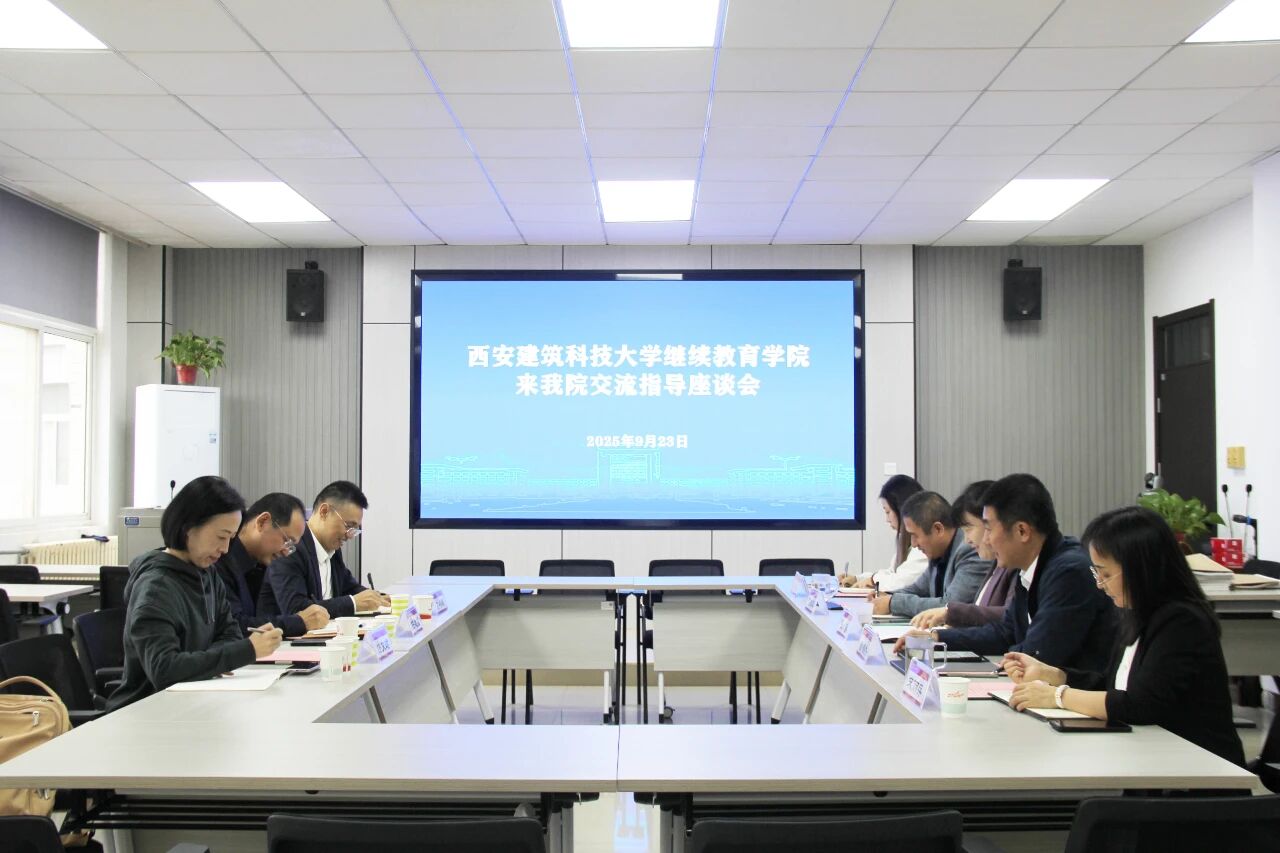 9月23日上午,西安建筑科技大学继续教育学院院长任建国、副院长孙小刚、培训一部部长钱文珺一行来best365调研交流。best365继续教育学院党政班子及相关人员参加座谈。会议由继续教育学院直属党支部书记张晶主持。