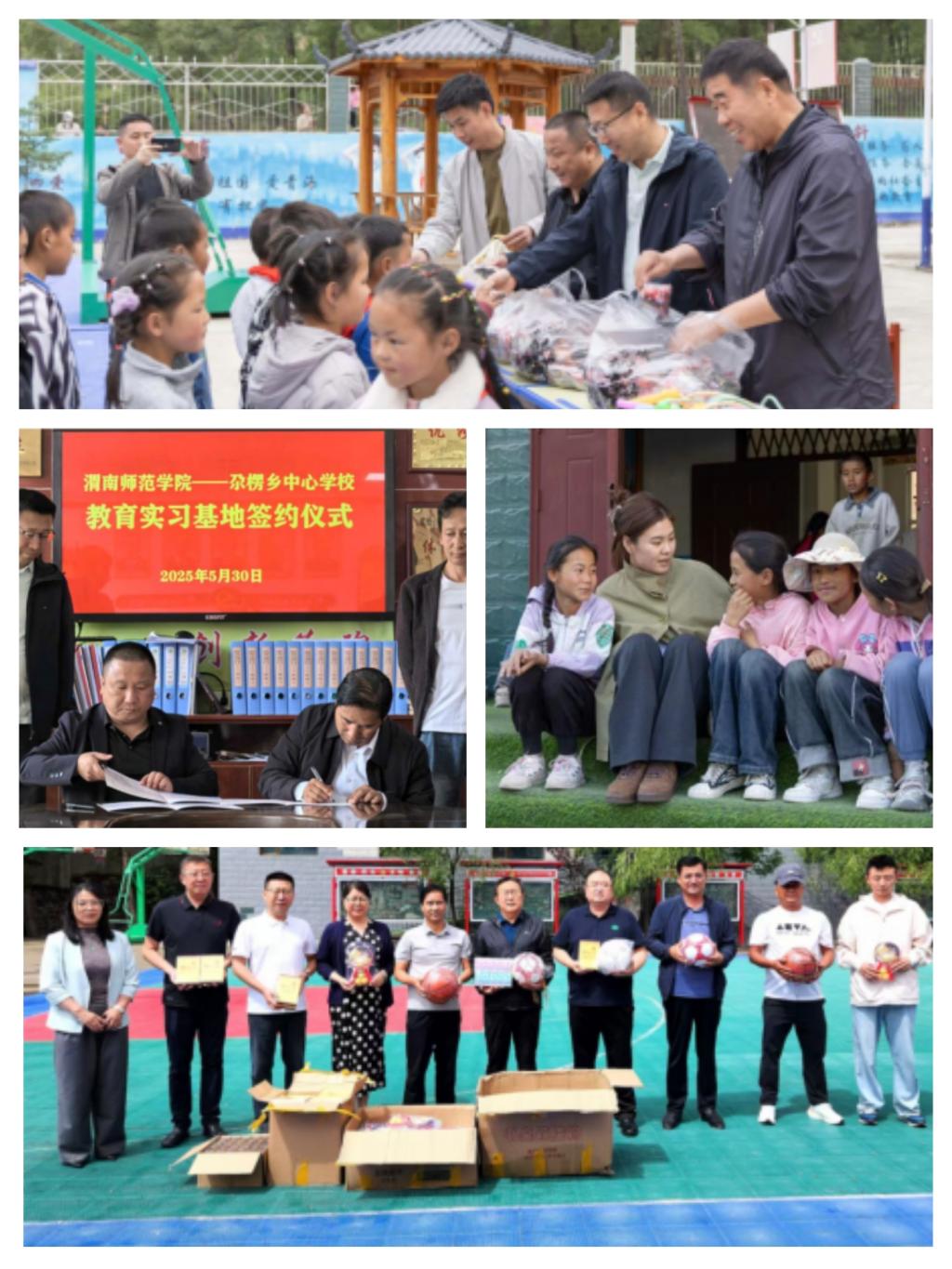 志愿服务队抵达后,迅速投入工作。调试闲置乐器,与校方深入交流,并参与筹备“六一”儿童节文艺汇演。5月29日,志愿者们与孩子们同台演出,带来歌曲、舞蹈等节目,捐赠文具、糖果等物资,营造了欢乐温馨的节日氛围。其间,团队还与尕楞中心学校校长多落签订了《教育实习基地协议》,标志着双方共建长效帮扶机制的开端。