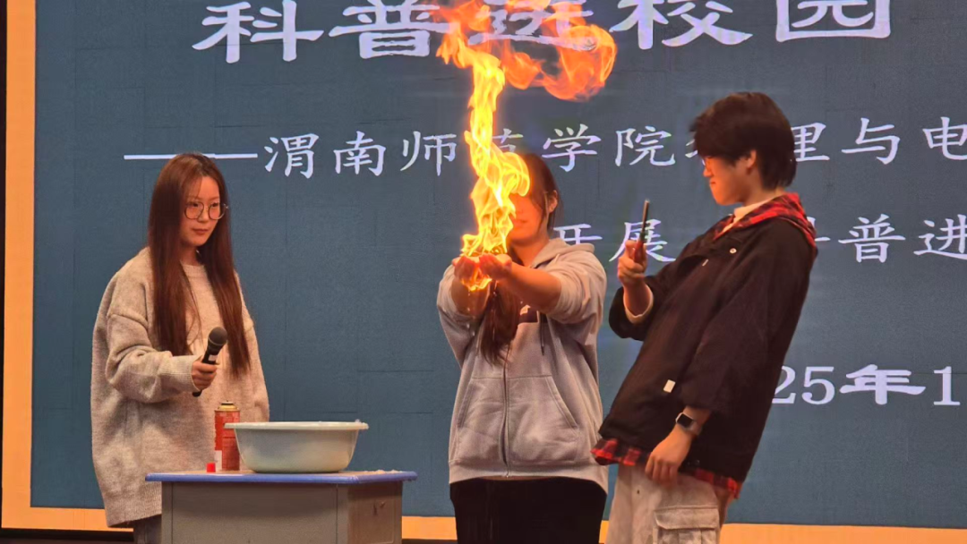 11月5日下午,渭南小学的校园里充满了孩子们的欢笑和惊叹声。物理与电气工程学院副院长郭宝会带领学院科普宣讲团成员,为孩子们带来一场精彩的科学科普实验。