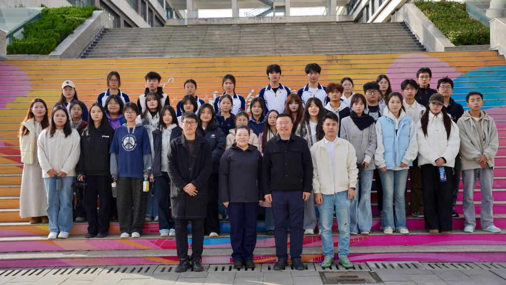 座谈会后,两校学生记者一同在校园标志景观打卡留念,拍摄记者节短视频,相互交流学习。