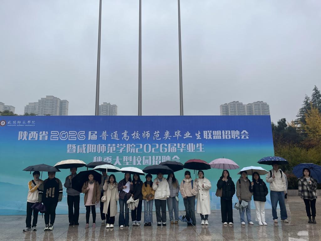 为进一步拓宽2026届毕业生就业渠道,搭建优质就业对接平台,切实推进毕业生就业工作,11月7日,数学与统计学院精心组织、统一安排,由学工办副主任王淑婷、毕业班辅导员张贝贝带领部分应届毕业生,乘坐学院安排的专车,前往咸阳师范学院参加大型校园招聘会。