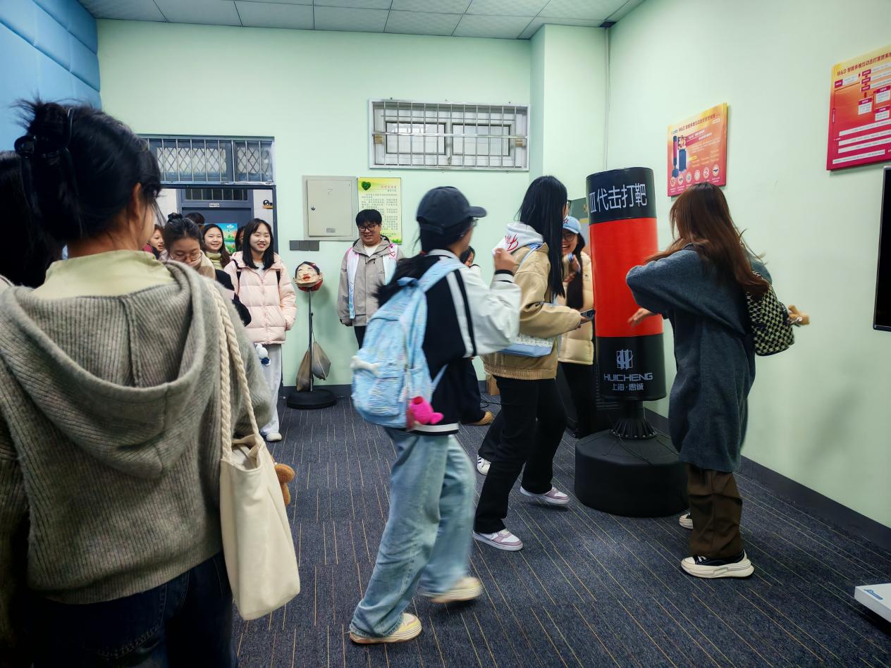 活动期间,大学生心理健康教育指导中心专职教师程芮与大学生心理健康协会骨干成员聚焦学生心理需求,以“实地参观+互动体验+团体辅导”模式,向来访同学们详细介绍心理健康教育中心的服务职能、师资队伍、功能部室、各类校级活动,带领同学们体验心理沙盘、音乐放松训练、情绪宣泄器材、智能体感互动宣泄仪、VR等专业设备。参观体验结束后,中心还组织了一系列丰富多彩的团体心理辅导活动。