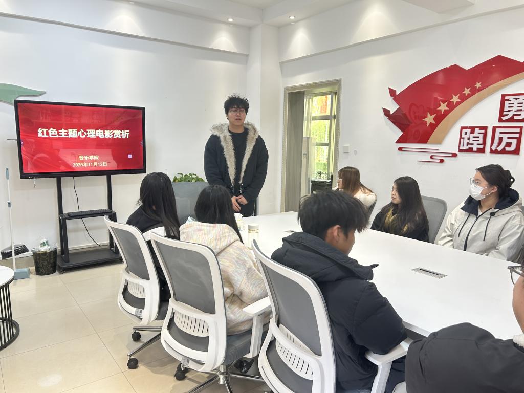 11月12日,音乐学院在“一站式”学生社区服务中心开展心理健康教育活动之红色主题电影赏析活动。活动由心理专干徐妍主持,各年级学生代表踊跃参与,在光影叙事中感悟红色力量,在心理解读中探寻成长密码。