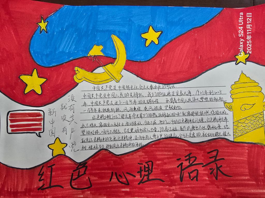 红色信念卡片的制作更是让人印象深刻,同学们以文字和图案的精妙结合,表达了对红色文化的深深敬仰和传承的坚定意志。每一张卡片都承载着对历史的尊重和对信念的坚守,彰显了青年一代的责任感和使命感。
