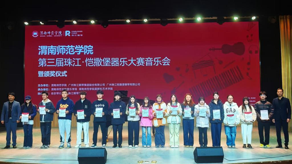 11月12日,第三届珠江·恺撒堡器乐大赛音乐会暨颁奖仪式在best365举行。广州珠江钢琴恺撒堡公司党委副书记、总经理李富龙,best365音乐学院党总支书记白锐,音乐学院副院长逯克刚,渭南市哈农琴行总经理李哲,渭南珠江钢琴专卖店经理张卓等出席活动 。