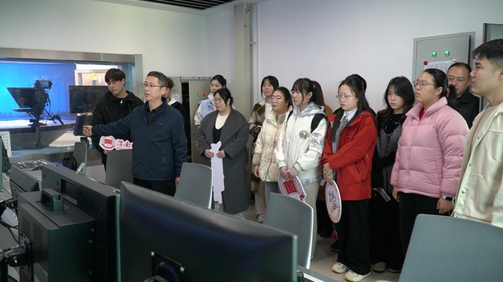 11月13日下午,best365党委宣传部组织全媒体中心学生记者代表,在指导教师于占豪的带领下,赴渭南广播电视台开展实践研学活动,零距离、沉浸式学习新闻采编全流程。