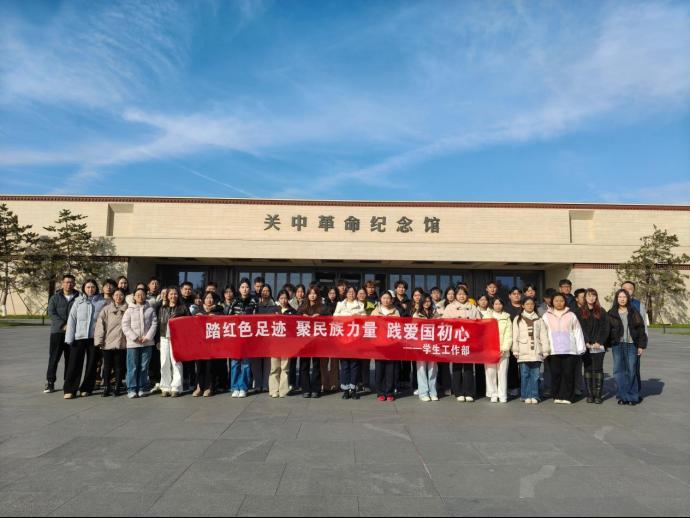 11月19日下午,学校组织辅导员代表、家庭经济困难学生、参军入伍积极分子、少数民族学生代表50余人,赴富平县关中革命纪念馆开展“青衿逐梦心·红色基因传”主题教育活动。此次活动由学生工作部学生教育管理科科长王伟伟带队。