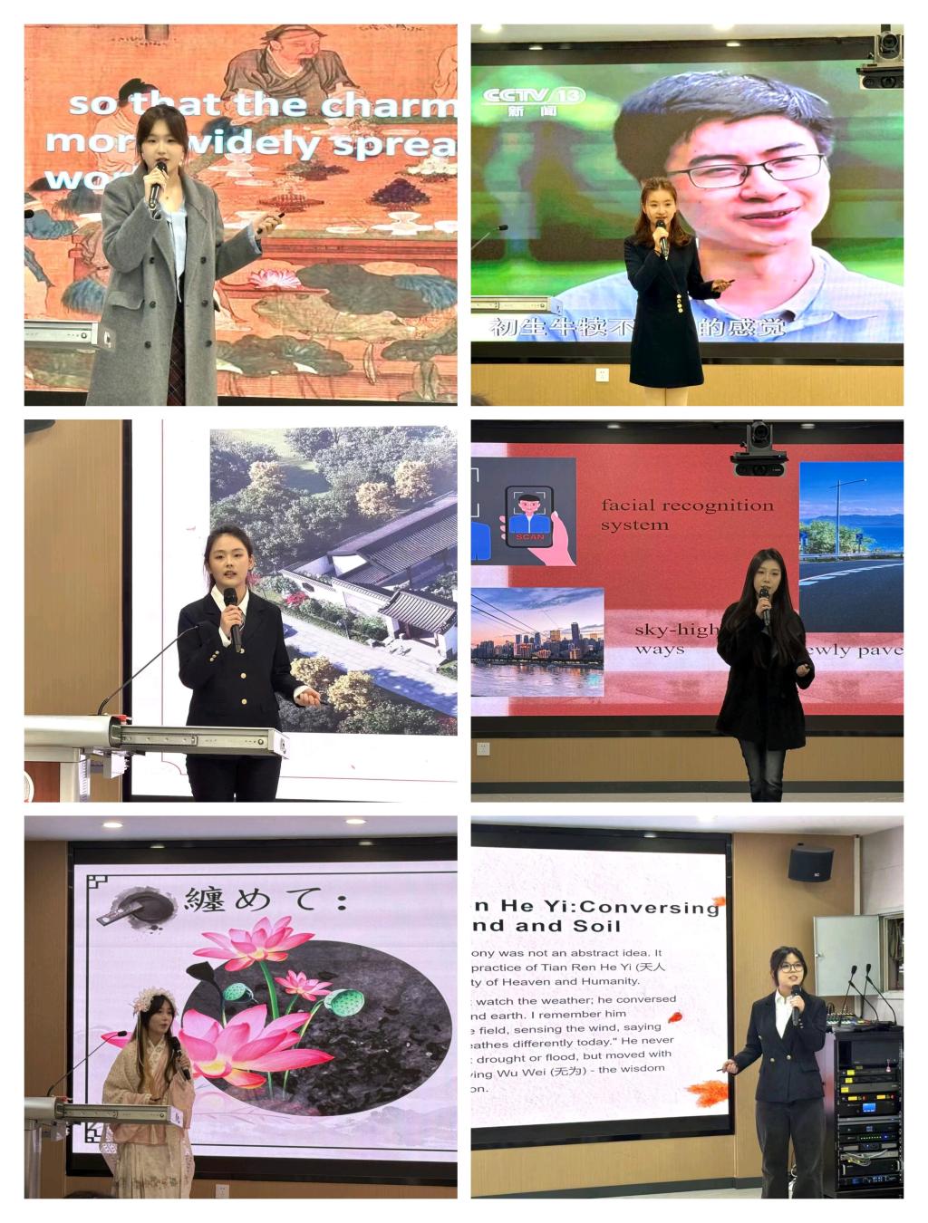 经过初赛选拔,17名选手晋级决赛。他们围绕中国传统文化、非遗技艺、感动人物、数字经济等主题,运用英语、朝鲜语、日语等语言进行精彩演绎。选手们在内容深度与表达技巧上均有显著提升:有的以浙江年糕展现饮食文化,有的借茶道精神传递东方哲学,有的通过皮影戏呈现非遗魅力,还有的以四合院为载体阐释建筑智慧,充分展现了外院学子用外语传播中华文化的创新实践。