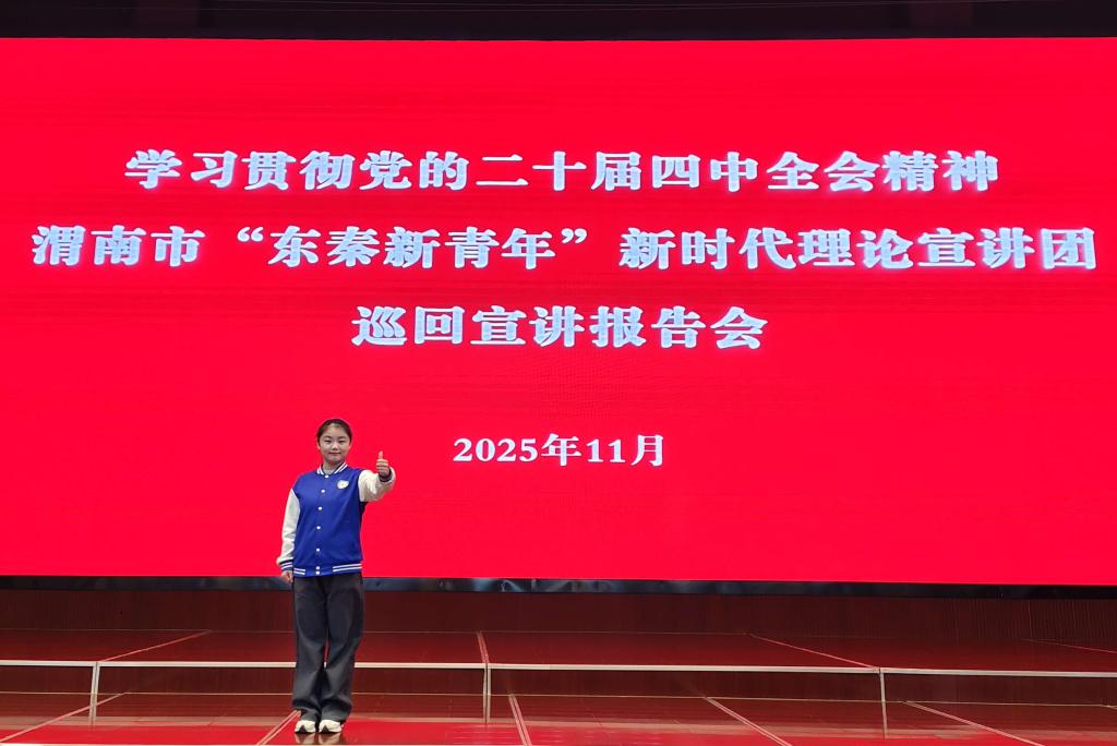 11月19日至27日,学习贯彻党的二十届四中全会精神渭南市“东秦新青年”新时代理论宣讲团深入渭南市11个县(市、区)和渭南高新区、渭南经开区开展巡回宣讲活动。best365雷锋宣讲团成员、外国语学院团委书记伍萌参与宣讲11场,雷锋宣讲团成员、环境与生命科学学院生物科学243班学生李敏莺参与宣讲2场,在本次巡回宣讲活动中获得广泛好评。