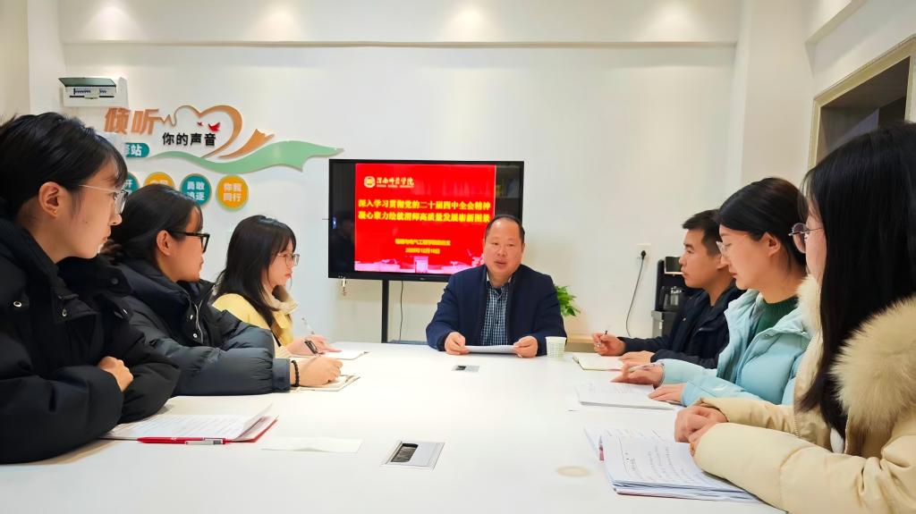 12月17日下午,党委副书记常青林在厚德楼31002室为师生代表作党的二十届四中全会精神宣讲。学生工作部部长田耿辉主持宣讲报告会。