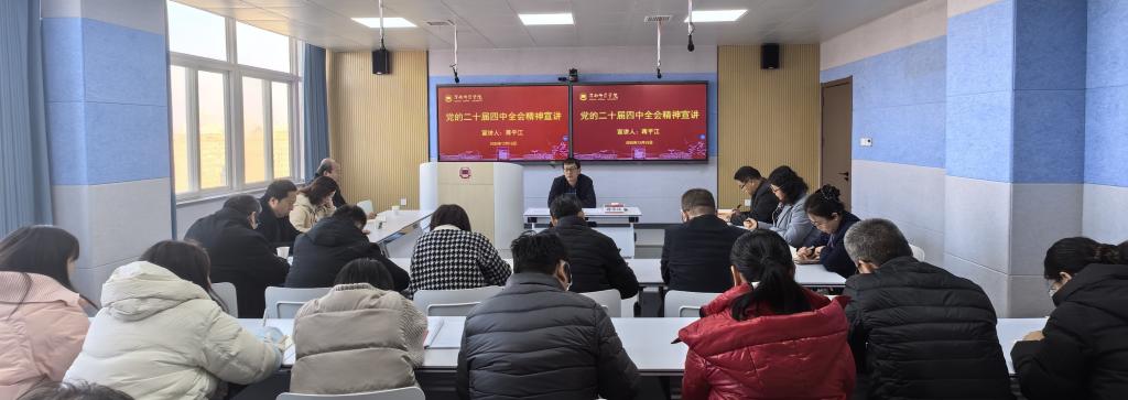 肖耀刚围绕深刻领会党的二十届四中全会的重大意义和精神实质、深刻把握“十五五”规划建议的重点和要求、持之以恒推进全面从严治党和以纪检监察工作的高质量发展保障学校改革发展行稳致远四个方面对党的二十届四中全会精神进行系统宣讲和阐释,在总结学校“十四五”以来取得的丰硕成果基础上,结合学校“十五五”规划编制的实际需求,深入分析了当前学校发展面临的机遇与挑战。他还结合学校纪检监察工作实际,阐述了持之以恒推进全面从严治党的重要性,要求全体党员干部要时刻绷紧纪律规矩这根弦,筑牢拒腐防变的思想防线,以风清气正的政治生态保障学校各项事业健康发展。