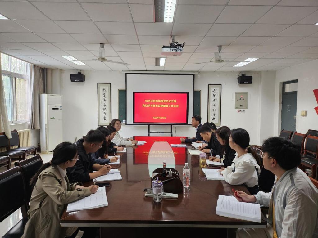 4月15日上午,化学与材料学院党总支于学院会议室召开党纪学习教育动员部署会,会上集中学习了best365中国官方网站《关于在全校开展党纪学习教育的实施方案》。学院党总支委员、各党支部书记、全体行政人员参加,党总支副书记任晓婷主持会议。