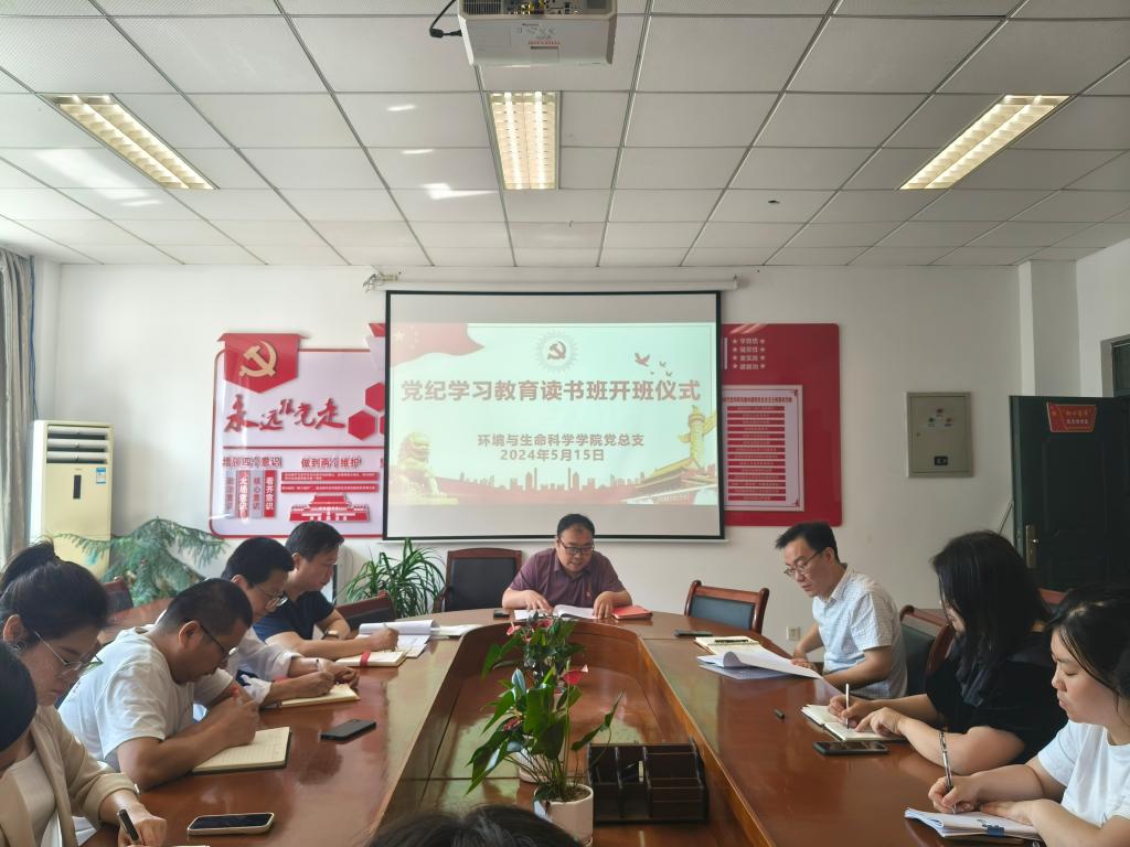 5月15日,环境与生命科学学院党总支党纪学习教育读书班开班,学院处级党员干部、党总支委员、党支部委员以及党员骨干参加开班仪式,党总支书记魏睿主持开班仪式。
