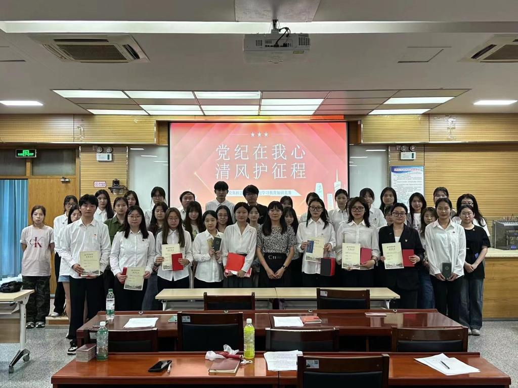 6月14日,学生党员、发展对象参加党纪学习教育知识竞赛,活动由“红歌永传承,奋进新时代”“学纪心向党,知纪共担当”“明纪强党性,守纪践于行”三部分组织,通过听歌识曲、现场答卷、知识抢答的形式进行,题型灵活多样,题目丰富新颖。听歌识曲环节,观众踊跃举手,争相作答,现场参与感满满;现场答卷环节气氛紧张、扣人心弦;知识抢答环节,参赛选手拼手速、拼脑力,台上比分你追我赶。经过一个多小时的激烈角逐,最终评选出一等奖1名,二等奖2名,三等奖3名。