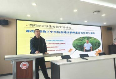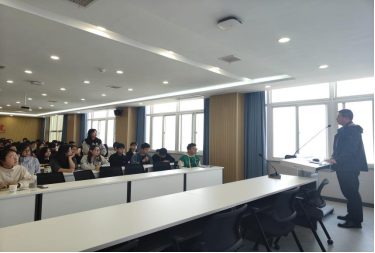 刘渭峰从大学生职业规划、中小学目前教学侧重的目标、教师的职业要求、教资面试等方面展开讲座。他在报告会上进行了大学生就业意向调查,并和同学们进行了分享。他从教学内容安排,教学评价方面谈到小学、初中、高中等不同阶段,信息科技教师教学侧重目标的不同。