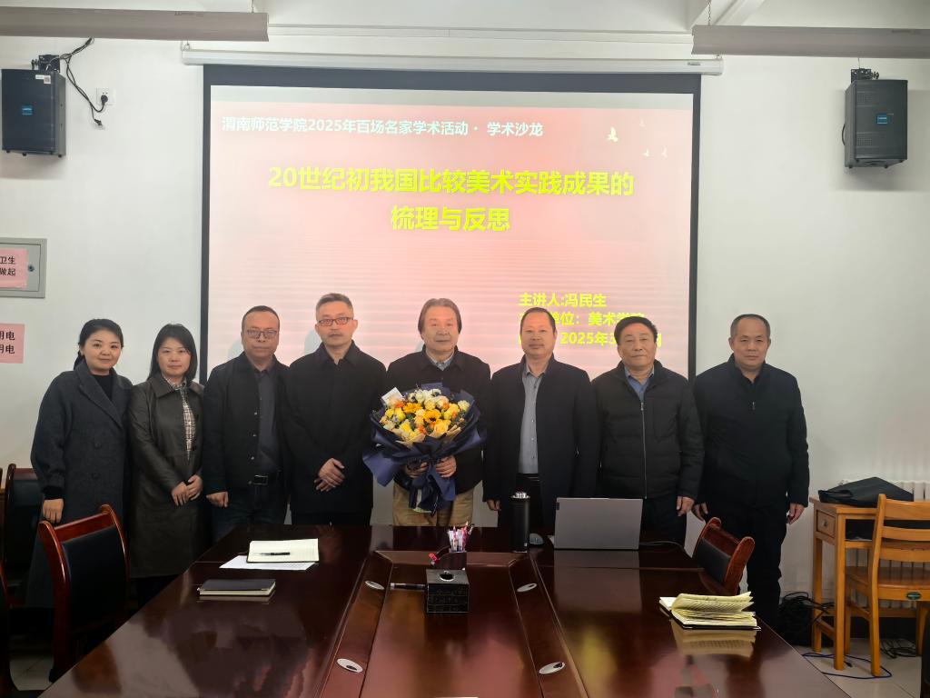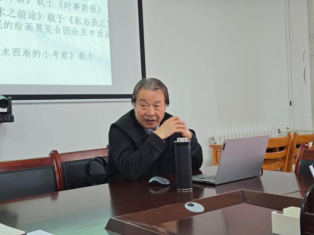 冯民生教授以中西比较美术研究为学理框架,系统解构了20世纪中国比较美术的学术谱系。讲座通过四维透视展开:20世纪中西比较美术的研究现状、20世纪中西比较美术的实践成果、中西比较美术实践成果的特点以及中西比较美术实践成果的反思文化,详细阐述了20世纪比较美术的发展历程及其对当代艺术创作的启示,引发了在场师生的热烈讨论。在互动讨论环节,冯民生详细解答了教师项目申报方面的一些疑问,共同讨论美术学院科研和学科建设的路径和方法,并针对目前教师们在专业发展中面临的困境,进行了深入交流和研讨。