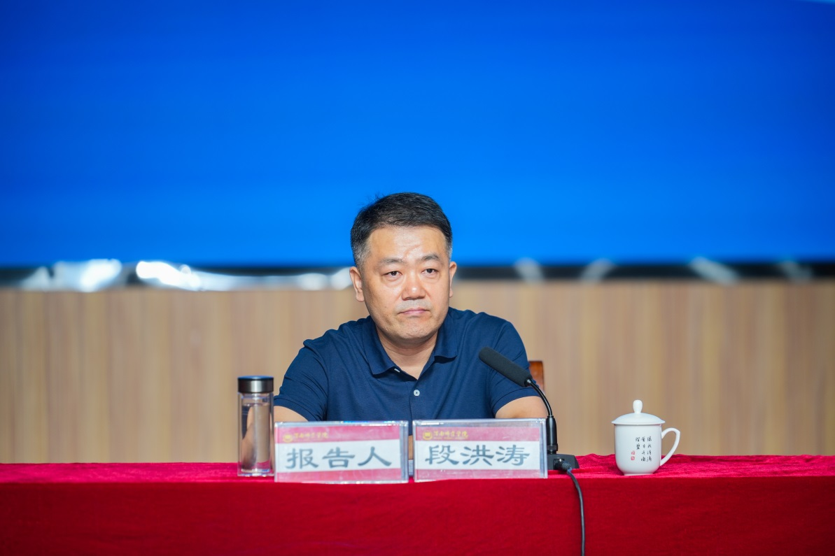报告中,段洪涛以《拓道致通》为主题,凭借丰富的行业经验与生动的讲述风格,深入且全面地阐述了渭南交通运输工作实践。通过分享四个具有代表性的故事,展现了交通建设中的宏大场面,以及平凡岗位上的动人时刻,从不同维度展现出交通领域的独特魅力与奋斗精神,为在场学生生动诠释了面对艰难险阻时应有的担当与进取态度。他指出,大学生要明确目标导向,将个人职业目标与单位发展目标紧密结合;在工作中要善于突出重点,迅速找准关键任务;持续实现能力提升,通过不断学习,提高自身专业技能和综合素养,以适应职场的变化与发展。