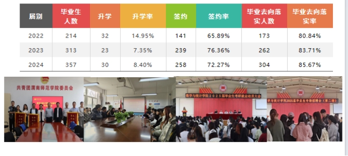 学院重视学生就业和考研工作,为考研学生助力和帮助,2024年研究生上线47人,录取30人,凸显了人才培养质量的稳步提升。