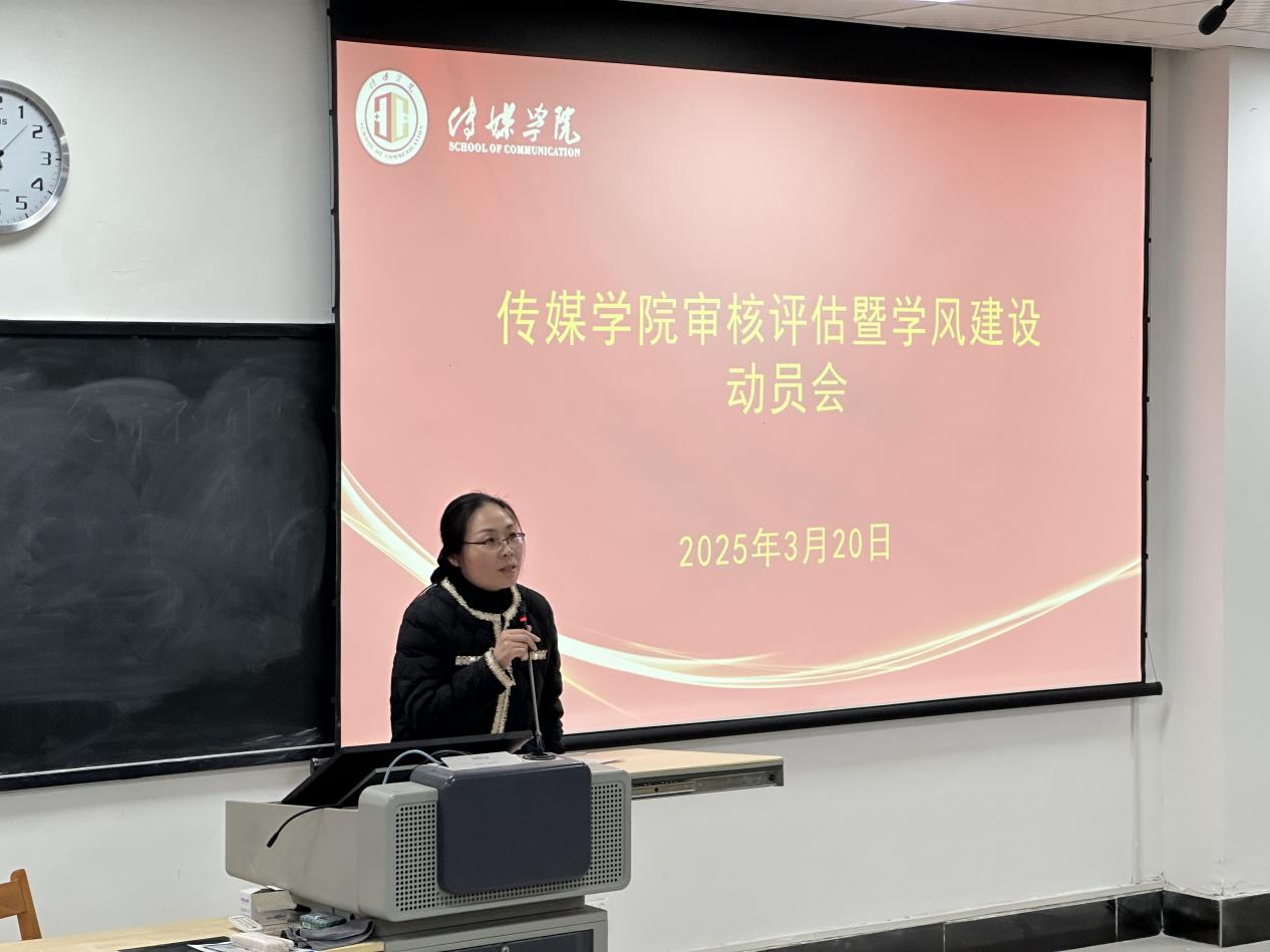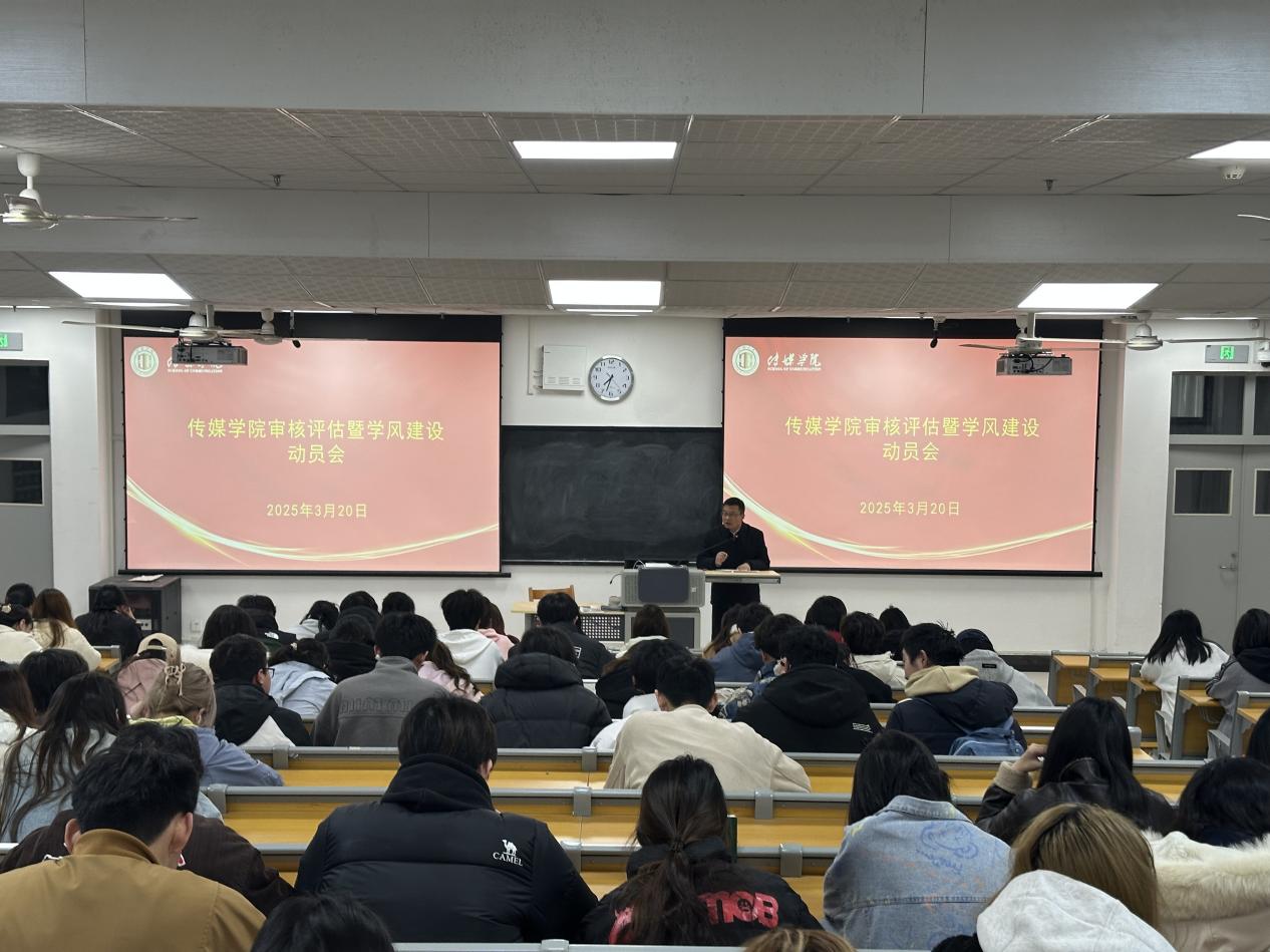 3月20日晚,传媒学院召开本科教育教学审核评估暨学风建设动员会,院长曹熙斌,党总支副书记周双,教师代表,班团干部,入党积极分子,奖助学金获得者等200余名师生参会,会议由副院长侯君奕主持。