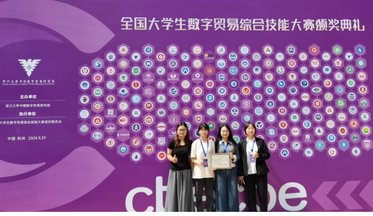 9月30日,一则令人振奋的喜讯从杭州传来,经济与管理学院经济学专业的张德琴、李涛、刘俊孜、袁依婷四位同学,在赵维老师的带领下,在第三届全国大学生数字贸易综合技能大赛中表现卓越,荣获国赛二等奖。