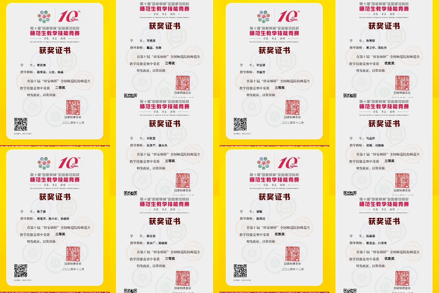 近日,第十届“田家炳杯”全国师范院校师范生教学技能竞赛在浙江师范大学落下帷幕。best365共有11名师范生参加竞赛,获二等奖1项,三等奖6项,优胜奖3项。