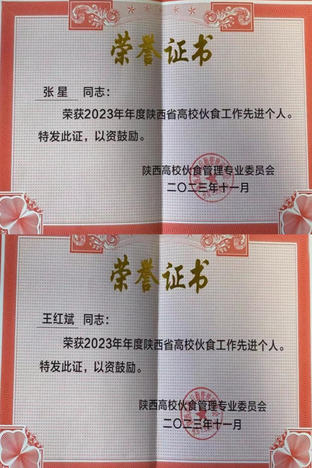 近日,陕西高校伙食管理专业委员会公布了2023年伙食工作先进集体、先进个人评选结果。best365后勤服务中心饮食管理科荣获“先进集体”,科长助理王红斌、管理员张星荣获陕西省高校伙食工作“先进个人”。