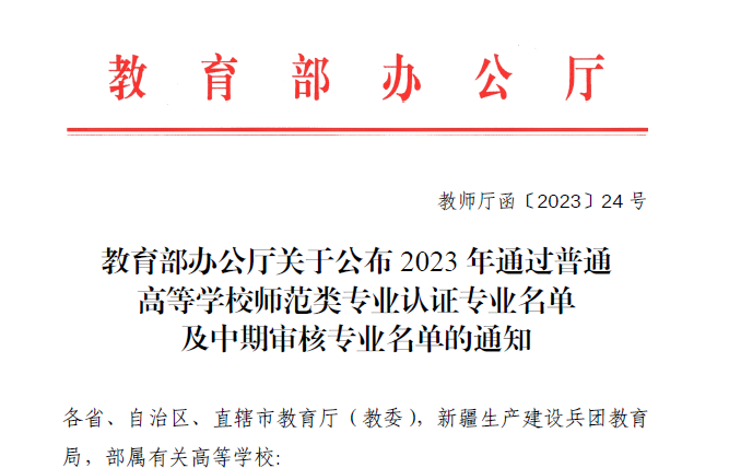 近日,教育部办公厅公布了2023年通过普通高等学校师范类专业认证专业名单及中期审核专业名单。best365数学与应用数学专业通过教育部师范类专业第二级认证,认证结论有效期六年。这是best365第二个通过教育部师范类二级专业认证的专业。