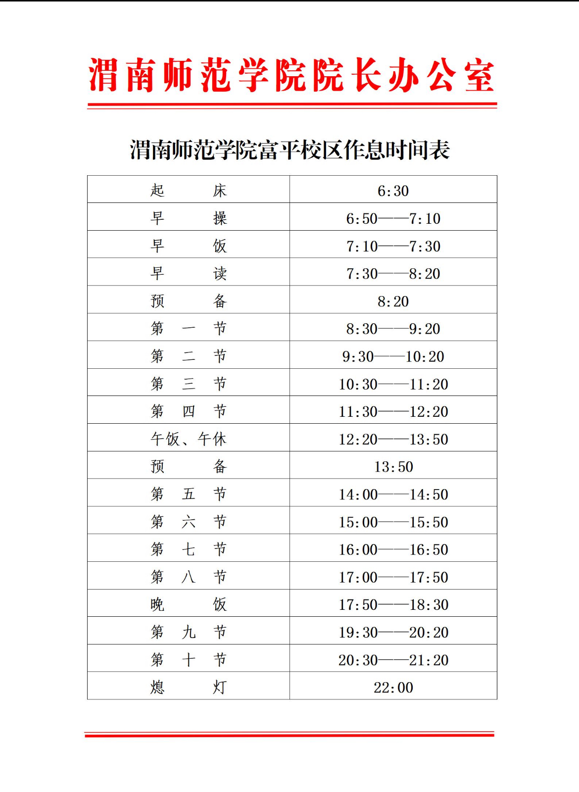 best365中国官方网站富平校区作息时间表