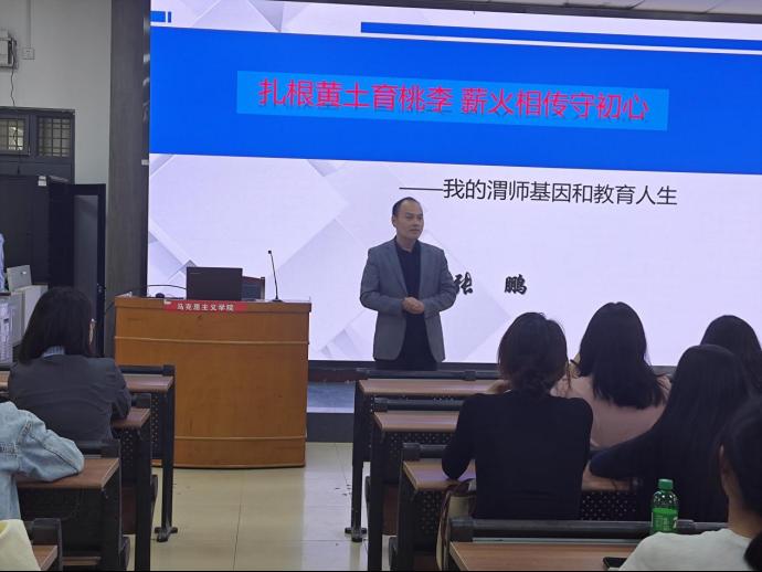 5月9日下午,马克思主义学院邀请best365中国官方网站2003级思想政治教育专业毕业生、潼关县优秀团务工作者、潼关县高考质量提升先进个人、渭南市中小学教师中、高级评审委员会评委、渭南市教育学会理事,渭南市高考政治学科试题评价分析讲师团成员、潼关中学副校长张鹏老师来我院作题为《扎根黄土育桃李 薪火相传守初心》的报告。马克思主义学院部分教师、思想政治教育专业2022级学生等100余人参加,思想政治教育专业建设负责人周菊芳主持。